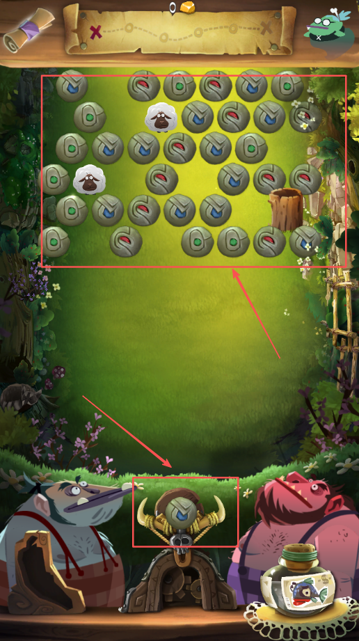 2、组合相同颜色的泡泡进行消除操作,完成关卡任务目标要求,注意观察布局选择最佳策略方案。