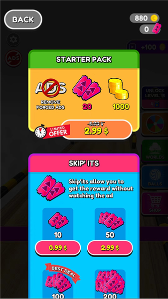 10、选择【SHOP】,可进行金币、卡牌等道具的购买,以上就是GoingBalls球球酷跑游戏攻略了。