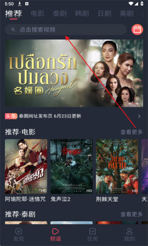 1、打开软件在首页点击上方搜索。
