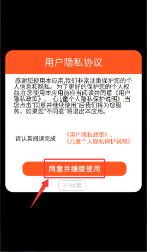 1、首次启动应用,请在隐私协议弹窗点击同意并继续使用。