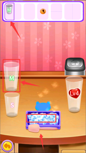 3、根据提示选择对应制作道具,开启饮品调配流程。