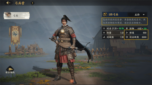 战术要点:需依赖盾兵前排嘲讽承伤进行保护,被骑兵近身时生存率极低,需严格把控站位距离。