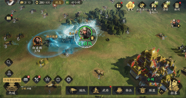 - 城战玩法:联盟需先将目标城池哨塔纳入领地范围,宣战时间为每日8:00至21:00,攻城战限时1小时,目标依次是击退城门守军、削减城门度至零、攻占主殿。若目标哨塔在联盟领地内,可提前设置自动攻城。