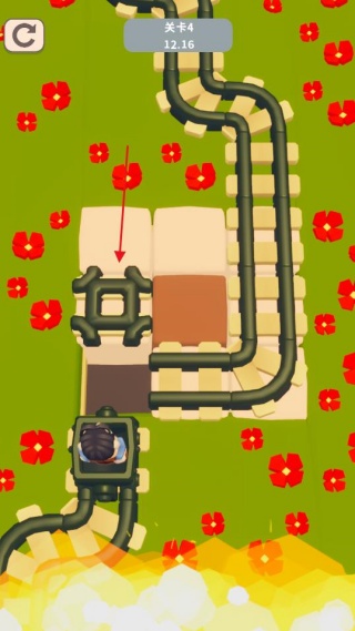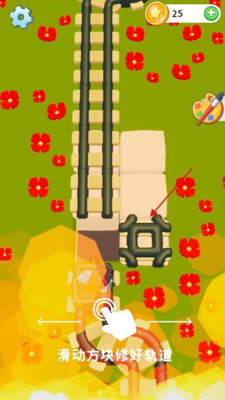 2.互动方块到空白位置,将这个多角度的铁轨完成连接任务,最终通过游戏的关卡。