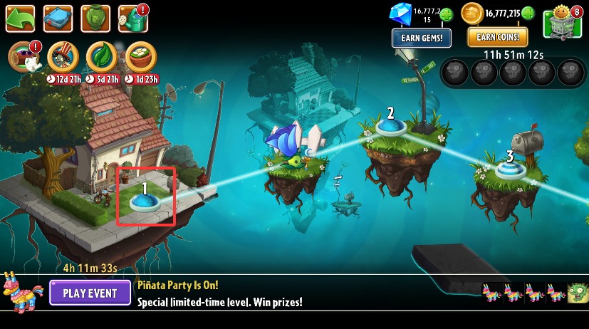 在故事方面,游戏也不再采用前作中的线性流程,而是让玩家随意在地图上移动,除了主线关卡外还存在不少分支,这些分支关卡需要玩家凑齐钥匙/星星才能进入,成功通过支线关卡能获得一些额外的奖励,除了全新的植物外,还有各类升级奖励,例如更多的卡片槽、初始阳光和小推车,这些奖励能在地图上随时查看,十分方便。