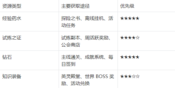 前 30 级主要依赖主线经验,通关后立即开启 “探险之书 - 经验副本”,每日可挑战 3 次,使用双倍经验药水(商城免费领取)可额外获得 50% 经验。离线挂机设置 “优先挑战经验副本”,即便不在线也能稳定获取升级资源,单日离线收益上限可通过完成周活跃任务提升。