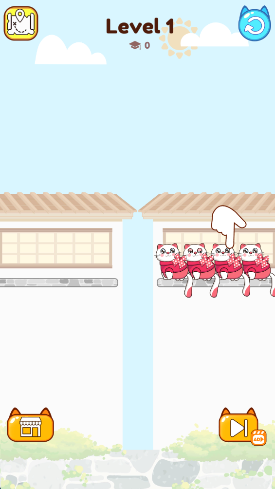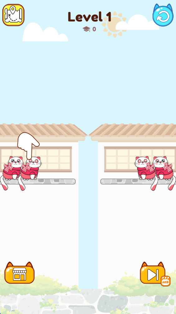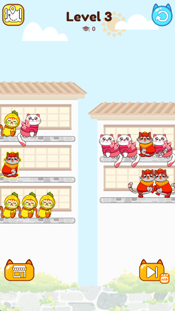 游戏简单易上手,但随着关卡的推进,难度逐渐增加,每个新的谜题都充满了挑战。随着进度的推进,你还将解锁不同种类的猫咪,增加更多的趣味性和收藏价值。