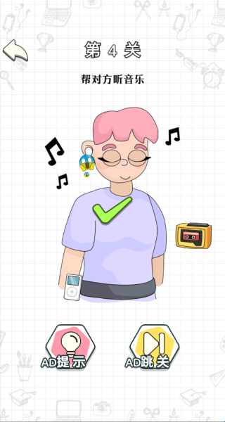 4、在某些关卡中,直接擦除耳机线,让角色变成蓝牙耳机,完成任务。