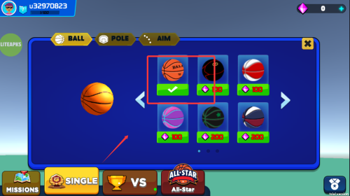 1、在篮球选择界面浏览多种不同外观的球体样式,根据个人喜好确定使用款式。