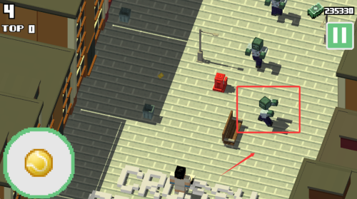 3、通过滑动屏幕控制运动员移动方向,点击按钮投掷球体击退僵尸,同时灵活避开障碍物与敌人接触。