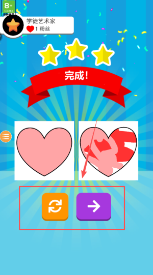 4、画面简洁艺术感强,用户需混合不同颜色选择所需色调,匹配形状与颜色越接近分数越高,可与朋友比拼绘画能力。