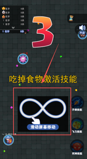 3、在发展过程中必须始终保持警惕,及时规避体积占优的玩家袭击,若不慎被吞噬就会前功尽弃,需要重新开始积累,游戏进行到尾声时会出现致命死神。