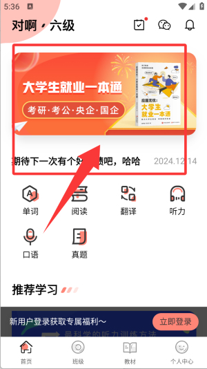 手机版英语六级君app是专为考六级同学打造的提分神器!单词、语法、听力阅读全课程覆盖,离线也能学。每天背单词+练题型,循序渐进打基础。不懂就上论坛问,老师学霸秒答疑。从基础巩固到考前冲刺,一步步扎实提升,六级轻松过!资源全、操作简,备考不抓瞎,是高效冲分的靠谱帮手!