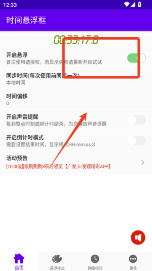 悬浮时钟也可以随时关闭、开启,运行的状态下时钟可以在其他运行的应用界面显示哦!
