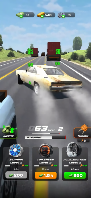 4、在车辆行驶过程中,当看到前方多辆卡车都带有金币时,规划好漂移路线,让车辆依次经过这些带有金币的卡车附近,高效收集金币。