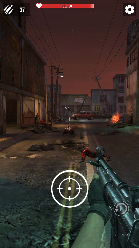 2.通过滑动屏幕的方式将准星对准僵尸。