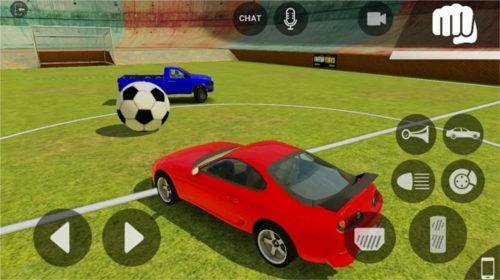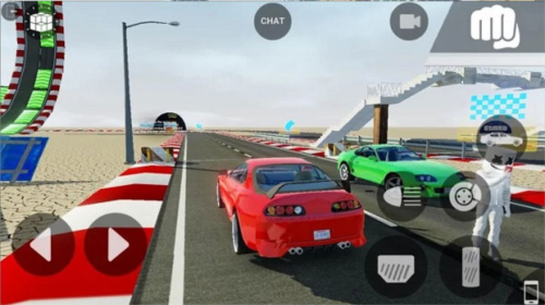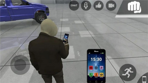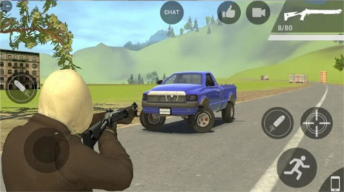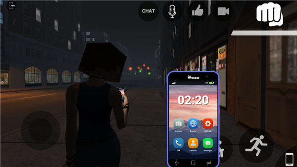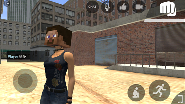 4、进入游戏里,可以先点击【chat】对话,左边的圆圈是前进或者后退,右边则是蹲下和跳跃