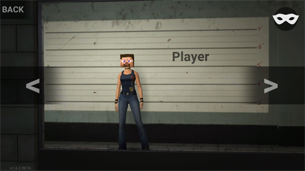 1、进入自由之城游戏后,点击左右侧的箭头可以给人物换衣服,右上角的眼镜图标可以遮挡整个脸部