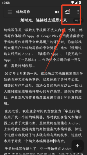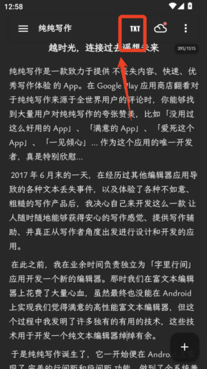 手机版纯纯写作是一款深受写作者喜爱的神仙工具!界面干净没广告,写文自动实时保存,再也不怕闪退丢稿。能直接用符号快速排版,还能插图混排。书架管所有文档,导出txt/pdf超方便。多人拼字房在线battle手速,写小说有大纲情报一体界面,敏感词还能自动标红。电脑手机同步写,护眼模式超贴心~爱码字、写小说的宝子,用它效率翻倍!