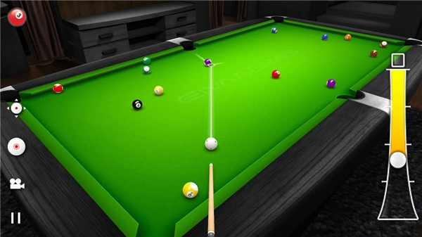 和电脑AI对战,有标准的8球和9球规则。触摸屏幕来调整方向,拖拽右边的力度条,松开后击球。自由球模式,按住任意位置移动母球,再次点击母球确认地点。