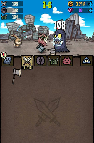 6、游戏上面的资源和重要,不定期的会有鸟飞过(点击鸟重要资源),第二个就是打造装备的时候会送紫宝石。升级尽量强化勇士升级,点击打怪获得更多金币的,有了金币强化人物属性,最后再去合成强化里面,强化点缩短打造时间。
