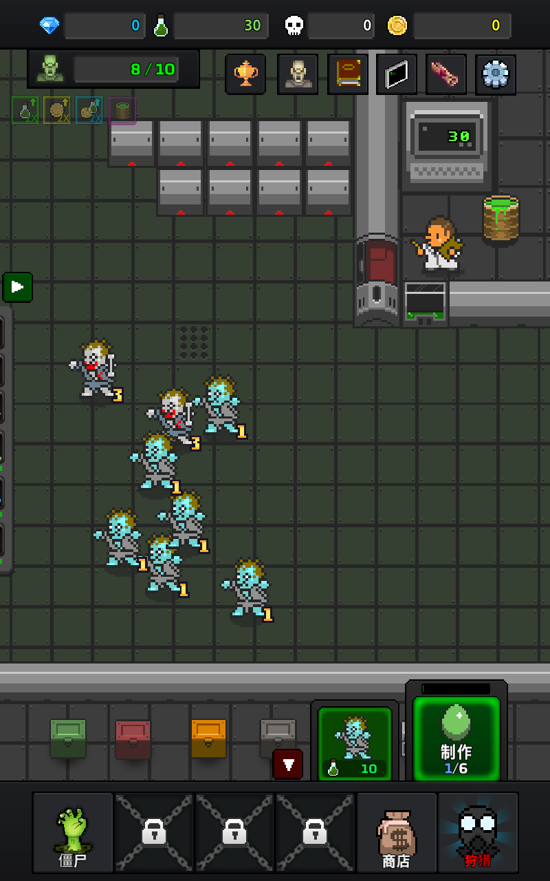 6、各种变异僵尸和研究所,让你培养你的僵尸军团。
