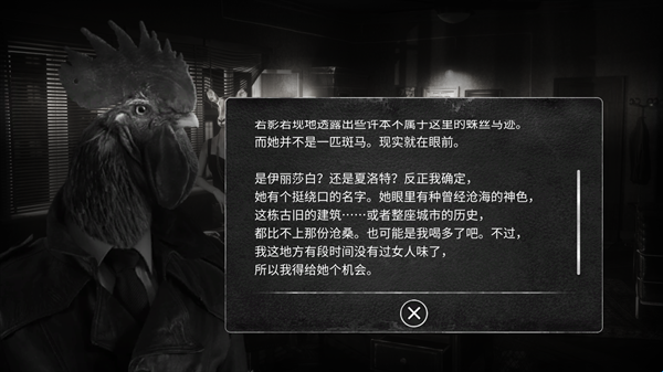 手机版公鸡神探汉化版是一款充满黑色幽默的冒险解谜游戏,融合了视觉小说与经典冒险元素。玩家将扮演公鸡警探桑尼,与搭档马蒂在光怪陆离的利爪市展开调查。游戏采用独特的黑白画面,搭配动态光影与爵士配乐,营造出浓厚的40年代黑色电影氛围。玩家需通过审问30余位拟人化动物角色、收集线索来破解案件。审讯系统要求玩家根据角色心理状态选择话术,揭露矛盾获取线索。游戏包含多结局分支,玩家决策将直接影响案件走向。汉化版完整保留了原作的荒诞剧情与丰富对话,带来沉浸式的侦探体验。