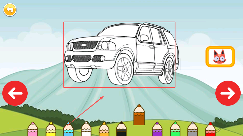 1、选择喜欢的汽车图案开始涂色,从多种车型中挑选感兴趣的主题进行创作,根据个人喜好选择涂色对象,培养自主选择能力。
