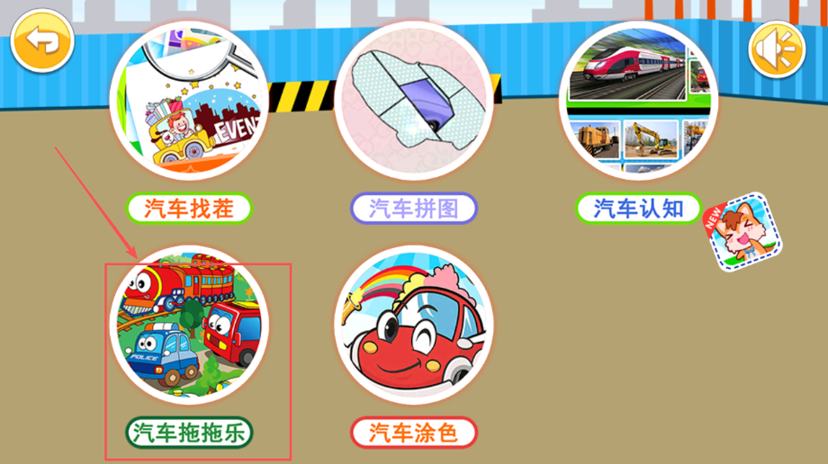 1、进入游戏后首先来到车辆选择界面,孩子可以根据自己的兴趣选择喜欢的汽车类型,从日常轿车、特种工程车到飞机等80多种交通工具。