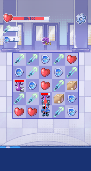 手机版格格大厦游戏是款超有创意的策略消除RPG手游!不用滑屏幕,操控英雄在格子棋盘上“走”出三消,凑刀剑攻击、盾牌防御,连对了能放大招揍怪物!每层楼都是谜题,得躲攻击、攒资源,还能升级英雄、搭技能。游戏有上百关卡,道具多奖励足,风格可爱不累人,快来试试吧!