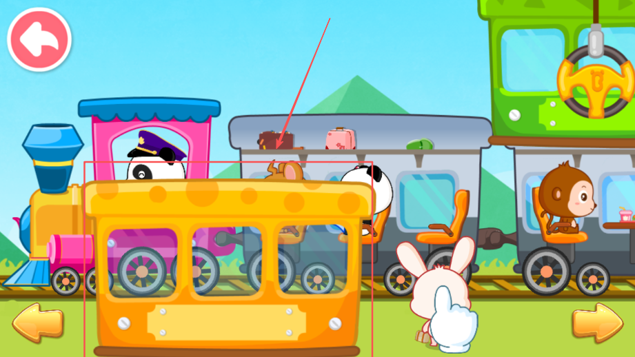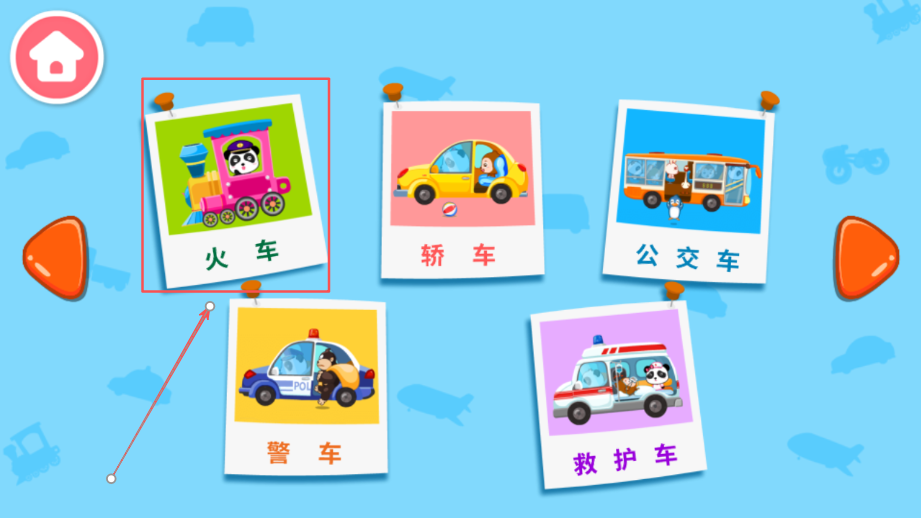 2、通过触摸屏幕与交通工具进行互动操作,仔细观察车辆特征并听取标准发音学习正确读法,加深对交通工具的印象和记忆理解。