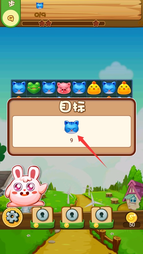 2、仔细查看本关卡需要达成的消除目标,明确需要消除的动物种类与数量。