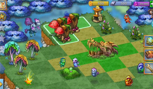 2、匹配蛋,孵化有用的巨龙,它们会在山谷中漫步,采集物体供你使用或匹配。