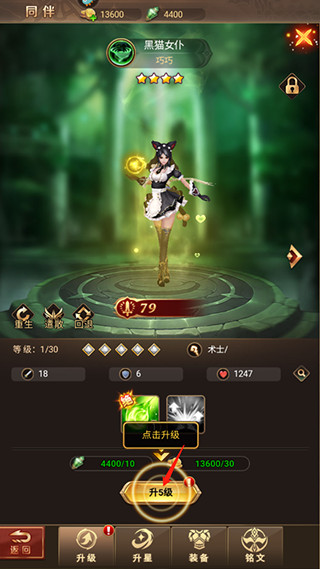 3、召唤伙伴之后还可以升级伙伴,点击同伴;