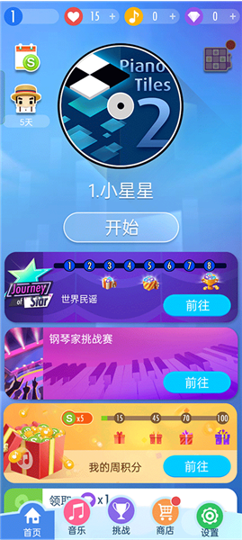 1、首先打开钢琴块2最新版,点击开始游戏;