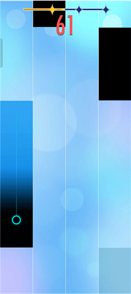 游戏的操作依然采用了全屏触控的模式,玩家们通过手指点击屏幕中的黑键即可完成音符的匹配,当然要想完成整个歌曲的挑战,那就得一个不差的点击完所有黑键了。游戏的操作方式虽然没有改变,不过操作过程有了很大不同,这一次的按键会出现“拖尾‘的效果,需要玩家们长时间按住才行,这在增加游戏难度的同时也增加了整体的趣味性。