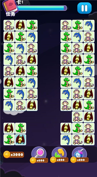 4、消除玩法很简单,只需要将相同两种牌连接在一起即可消除,但是注意两种牌的连接拐弯不能超过两个