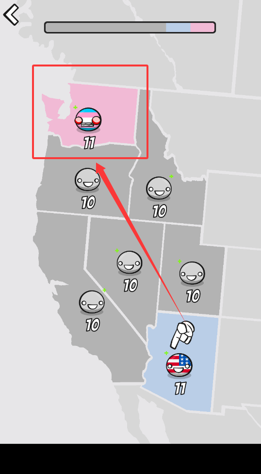 1、玩家可从众多卡通国家中选择初始势力,带领该国军队征战四方,通过攻占相邻领土逐步扩大统治范围。