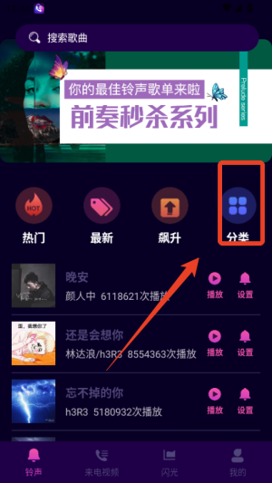 1、【铃声分类】时下最火最热的分类你都可以在这里找到,精选,热点,男神,影视,文字等