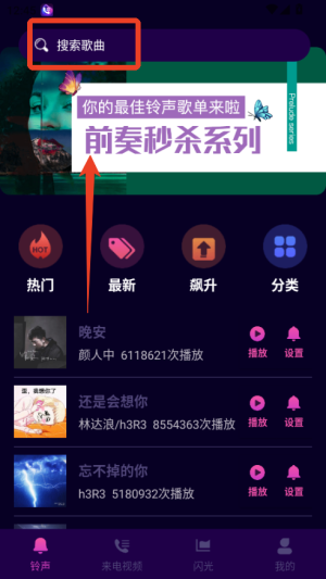 3、在搜索栏输入关键词,比如“轻音乐”或“动漫”,快速定位到相关铃声资源。