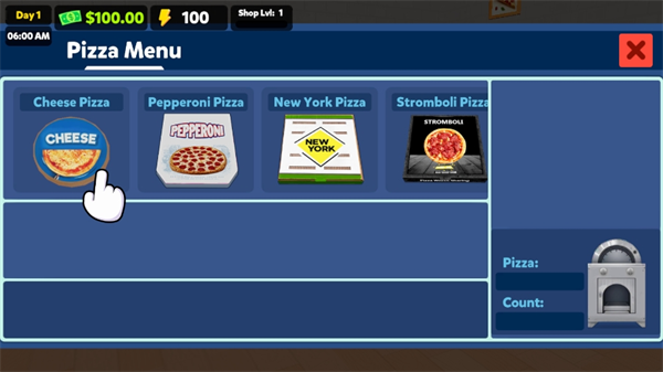 不断扩展自己的商店,雇佣更多的员工帮助你管理店铺,将制作好的披萨拿出来售卖,满足顾客的购买需求。