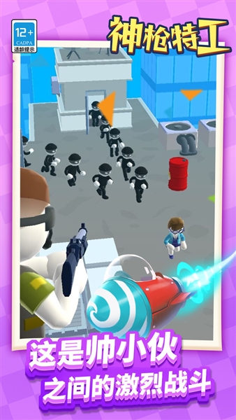 2、敌人包含普通匪徒、重装士兵、炸弹客等多种类型,玩家可升级步枪射速、换弹速度、穿透力等属性应对不同威胁。