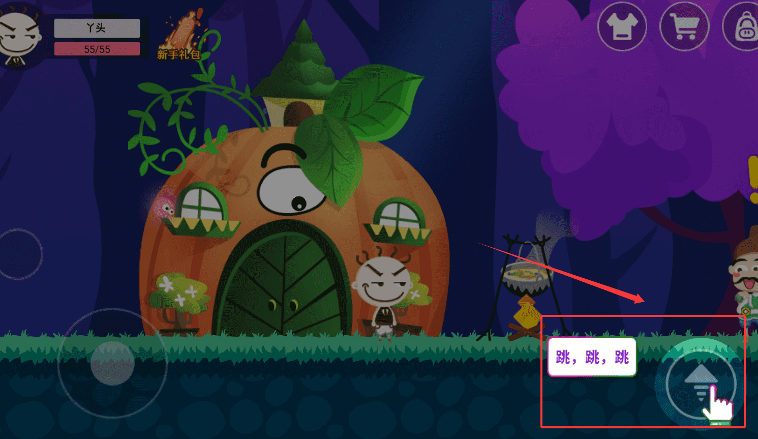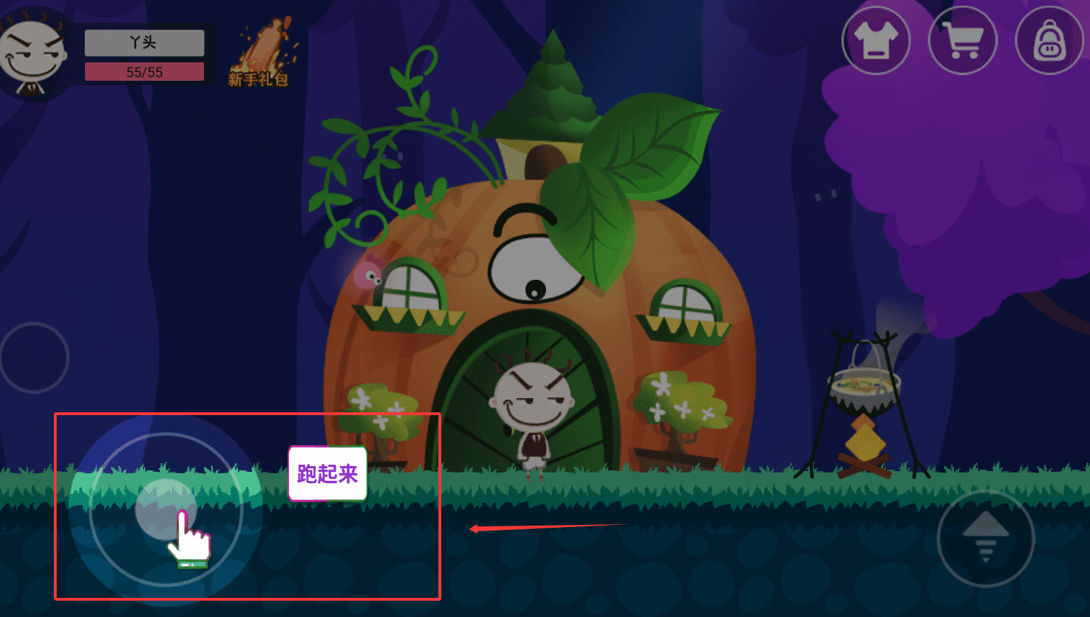 1、首先需要点击画面上方悬挂的苹果,使其坠落并准确命中牛炖角色,随后拾取掉落在地的苹果道具。