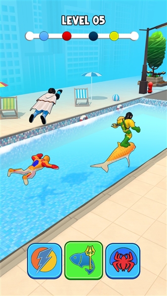 2、游戏节奏非常快,玩家要时刻关注赛道的变化,第一时间变成对应的英雄角色,提升跑动速度。
