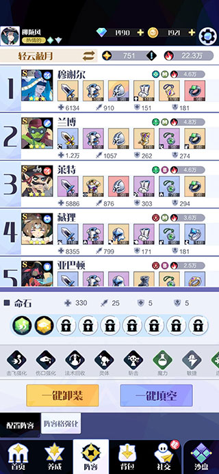 8、连携:不同伙伴会提供不同的连携效果,点击伙伴即可查看个人连携属性,点击命石槽下方可查看全队连携属性
