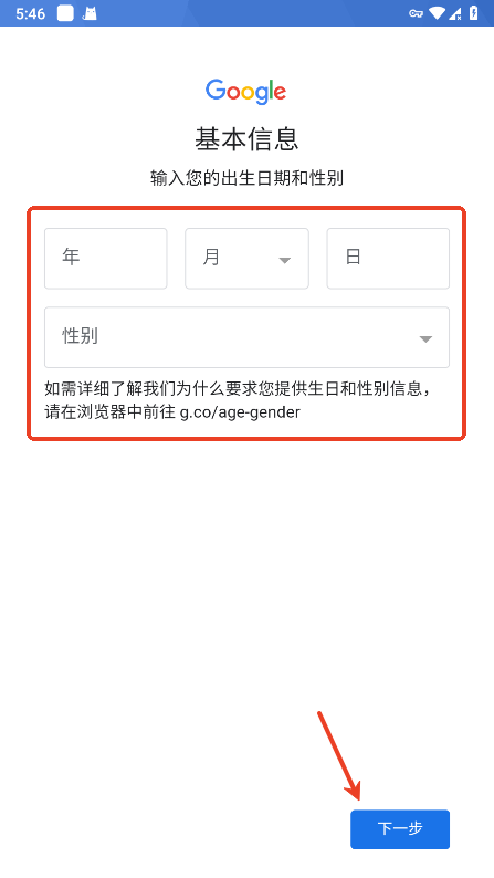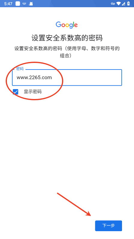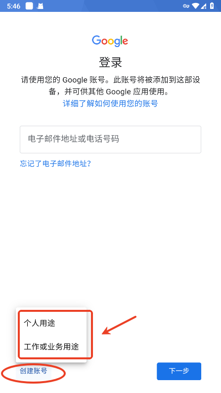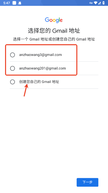 系统会推荐2个谷歌邮箱地址,也可以点最底下自定义;