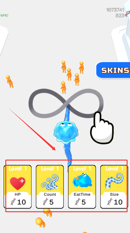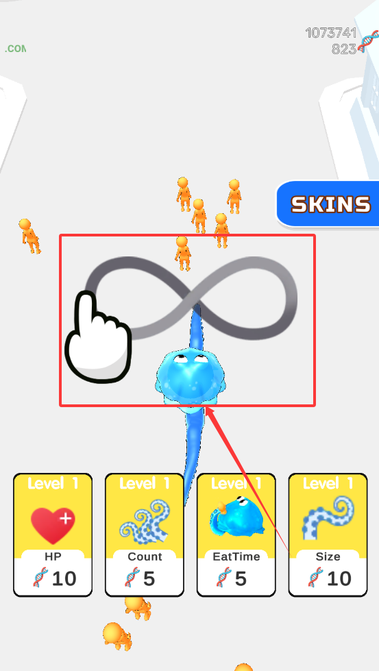 1、通过多种途径强化章鱼各项属性值,以最快速度吞噬场景中所有人类单位,采用精准有效的攻击策略消灭更多目标,从而获取丰厚金币奖励与成长资源。
