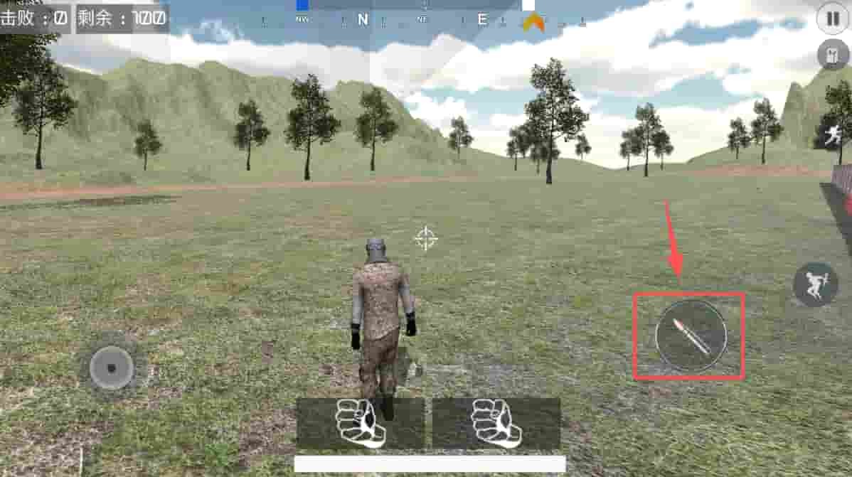 4、准备射击。找到敌人后,点击右下角的射击按钮,准备开火。