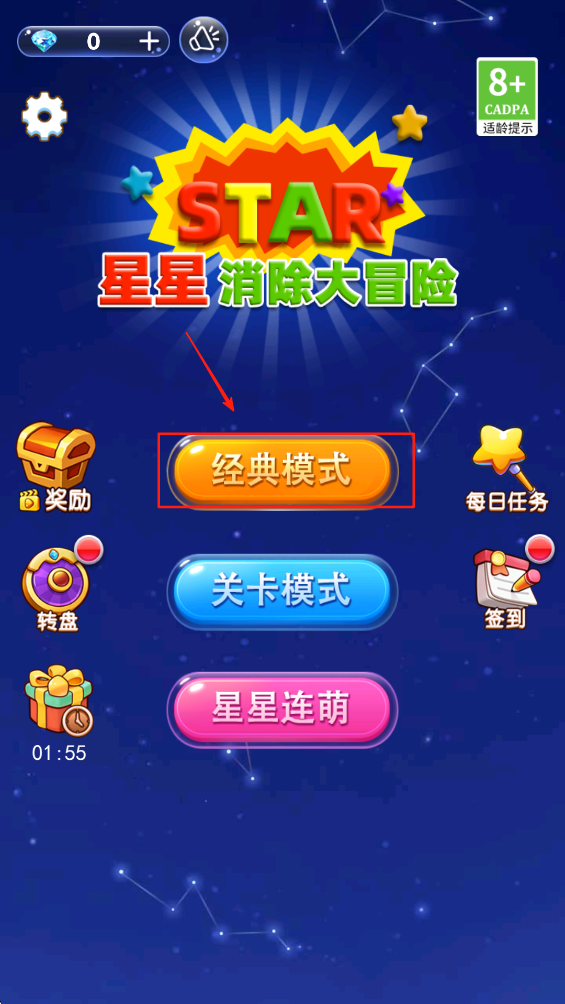 2、选择“经典模式”开始游戏,体验传统的消除乐趣。