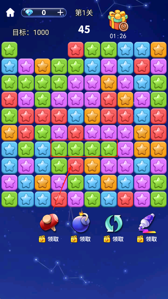 3、在游戏界面中,找到并点击相同的星星进行消除。